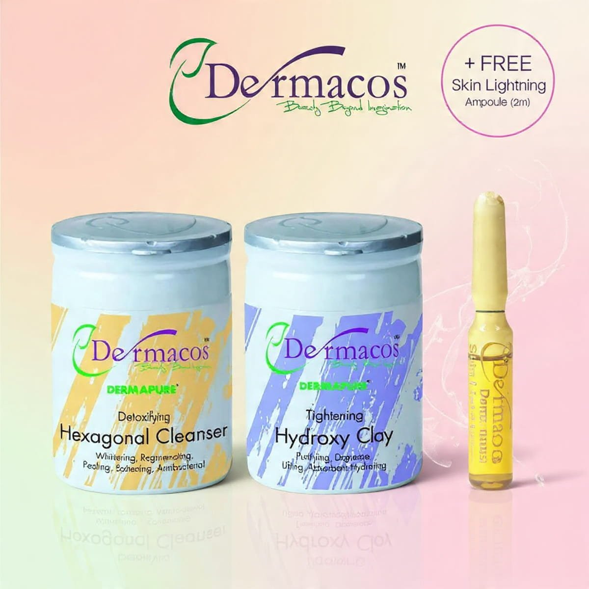 Transform your skincare routine with the Dermacos Instant Bright Pro Facial Kit (200gm Each) Pack of 2. This expertly curated duo brings together two advanced formulations designed to deliver visible brightening results in minutes. The innovative Hexagonal Cleanser utilizes unique hexagonal technology to penetrate deep into pores, lifting away impurities that ordinary cleansers miss. Follow with the Hydroxy Clay Mask, enriched with powerful hydroxy acids and purifying clays, to refine texture and draw out congestion. To complete your brightening journey, we’ve included a FREE Skin Lightning Ampoule (2ml) —a concentrated treatment serum that works to fade hyperpigmentation and even out skin tone. This professional-quality kit delivers salon results without the salon price tag.