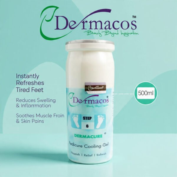 Soothe and refresh tired feet with Dermacos Pedicure Cooling Gel, a rejuvenating formula specially designed to cool, calm, and hydrate the skin. This professional-grade gel helps reduce inflammation, discomfort, and heat caused by long hours of standing, dry skin, or foot fatigue. Its lightweight, fast-absorbing formula delivers instant relief while leaving the feet soft, smooth, and revitalized.